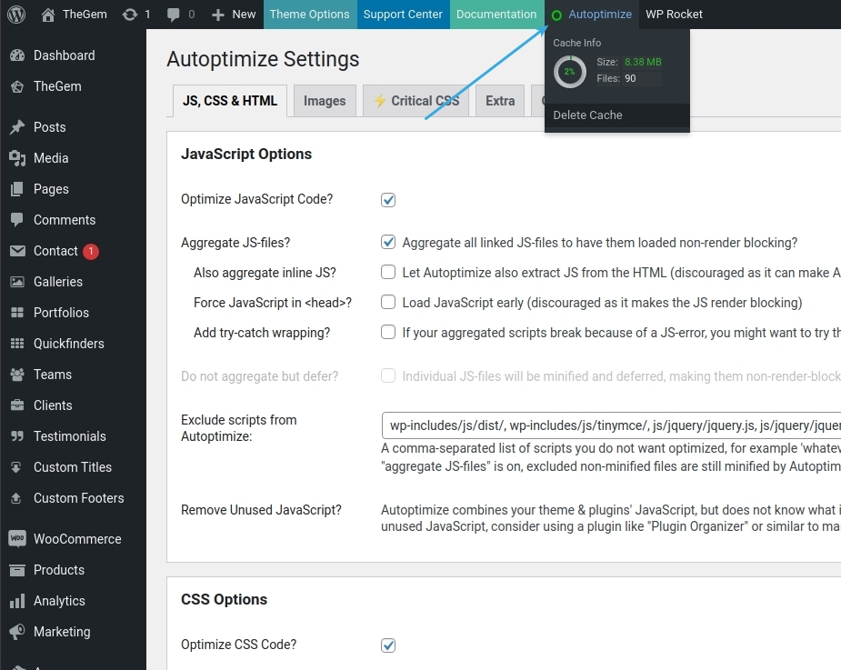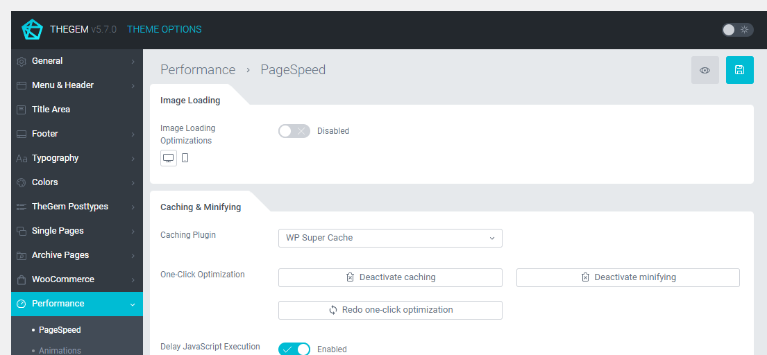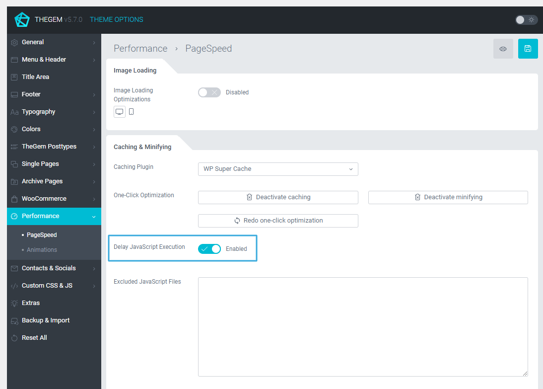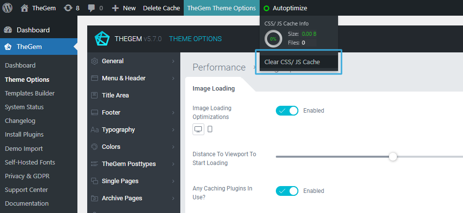 TheGem includes one-click optimization, which can be found in Theme Options under “Performance” menu.