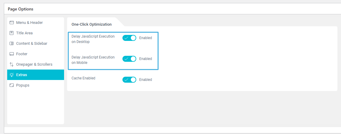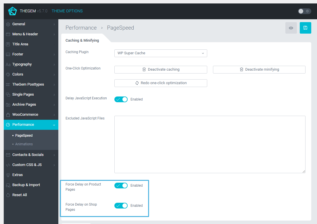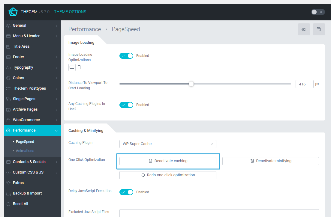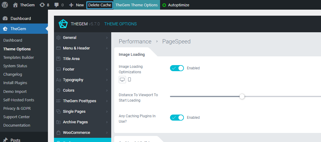 2. Go to “Theme Options → Performance → PageSpeed → Caching & Minifying”