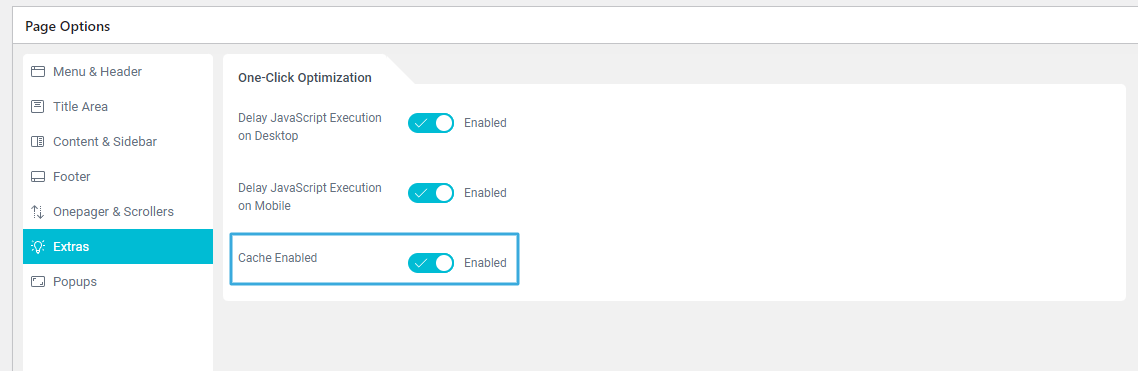 2. Under “Extras” → One-Click Optimization” use “Cache Enabled” setting